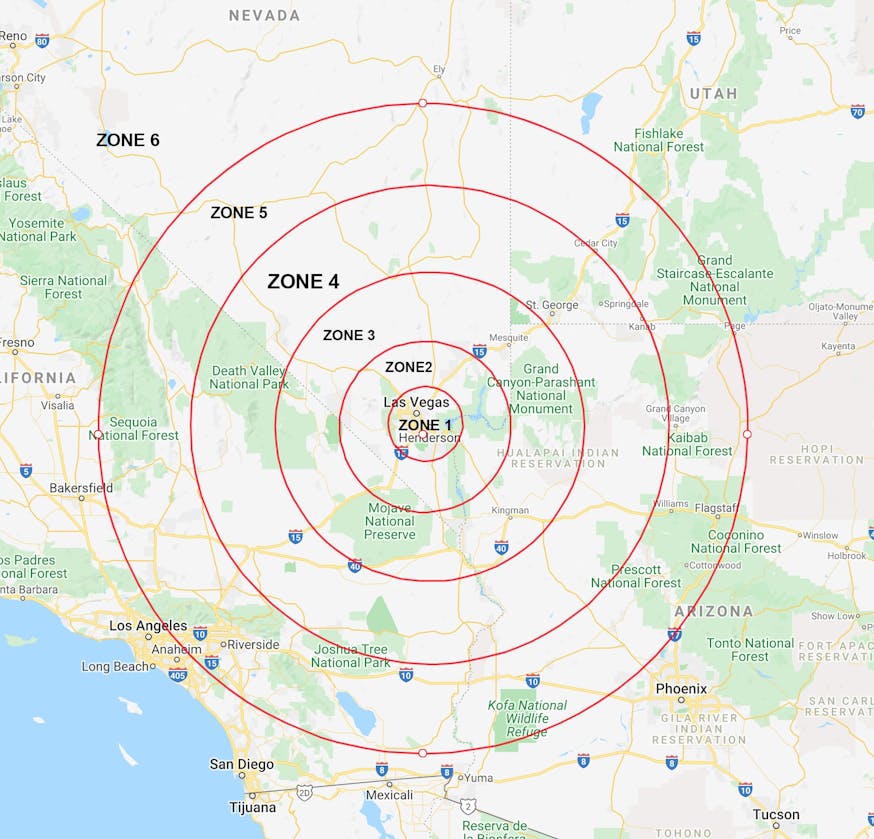 VegasSchoolShows.com is located in Henderson, NV. There are no travel fees for schools located in and around Las Vegas. See the map below and breakdown of travel fees for outlying locations around Las Vegas.